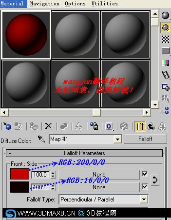 14、选择Falloff作为Reflect贴图,选择Falloff类型为Fresnel,并修改IOR为2.5,如图。