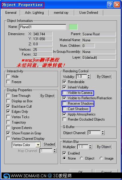19、设置反光板,并进入其属性选项,进行相关参数设置,如图。