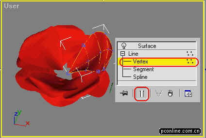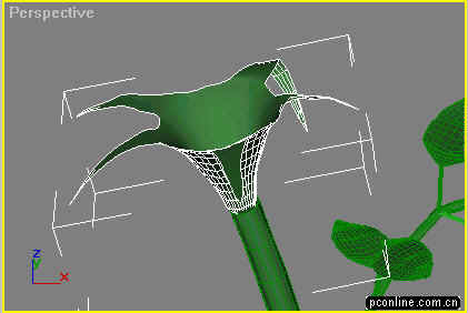 2、其中的豁口部分是一些面删除的结果。移动、旋转各组控制点使花托显得自然。不要只看一个视图,在各个视图中调整,在透视图中观看选点的情况。完成的花托如图六所示。