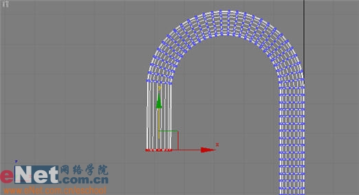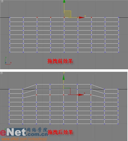 3、在顶部视图中用鼠标框选每一行的顶点,进行拖拽,如图3所示。