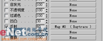 2、打开“贴图”卷展栏,单击“反射”后的“none”按钮,打开“材质/贴图浏览器”面板,选择“新建”单选项,然后在左边列表中双击“光线跟踪”贴图,并调整其值为60。如图14所示。