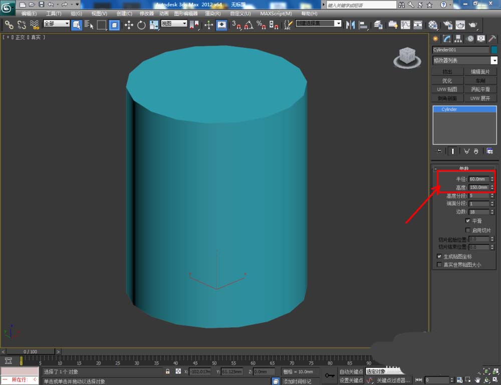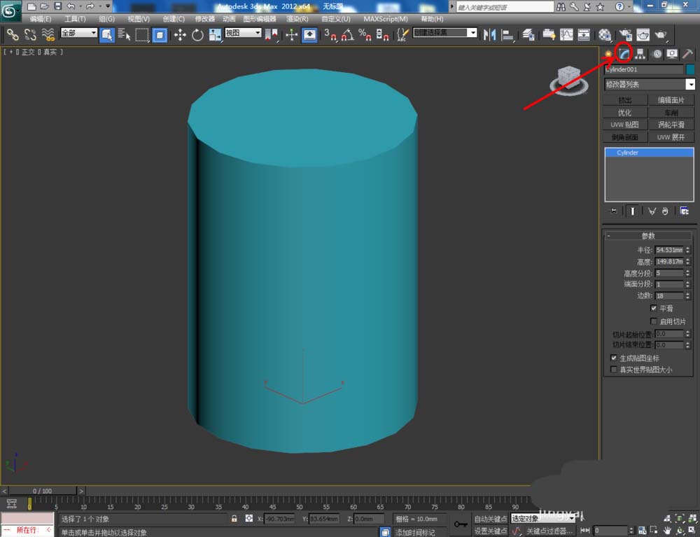 2、选中长方体,点击【修改】对圆柱体各个参数进行设置;