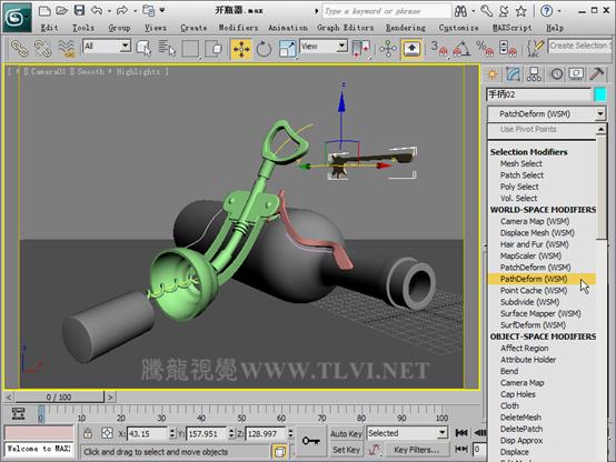 (9)在场景中选择“手柄02”对象,为该对象添加一个Path Deform(WSM)修改器。