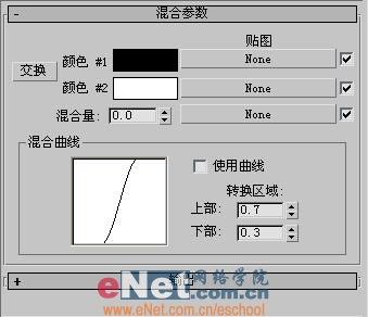 小提示:用“混合”贴图可以更改材质的颜色,先将“颜色#1”指定为材质,再设置“颜色#2”的颜色,最后用混合值来调制合成。