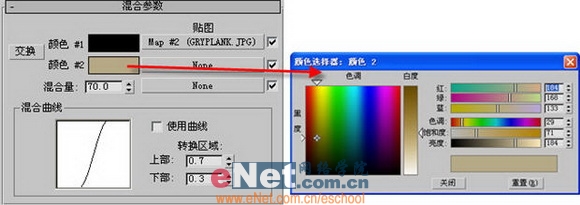 3、点击“转到父对象”按钮,回到混合贴图面板,修改“颜色#2”的颜色参数,如图8所示。