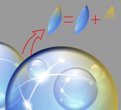 最后的阶段,是绘制后面不大不小的那个水晶球。 拷贝大球及其倒影到后面左上角处。 [Step11_1]