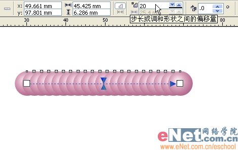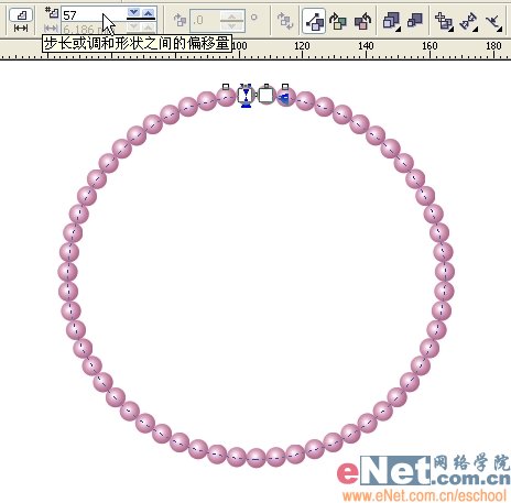 6、在属性栏上设置一个合适的步长值,直到珍珠布满整个圆环。