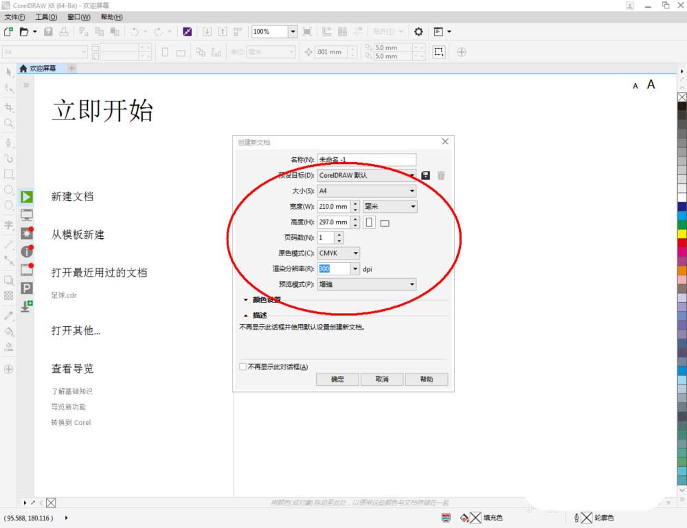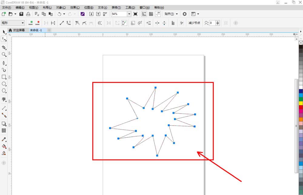 1、打开CorelDRAW X8 软件,点击【新建文档】,按图示参数新建一个cdr文档。点击【钢笔工具】按图示绘制一个多边图案;