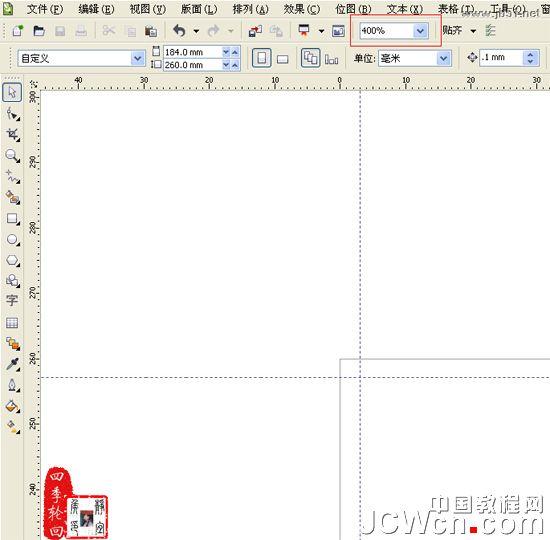 单击“确定”按钮,最后在标准工具栏中设置显示比例为400%,以便更加准确地添加辅助线。