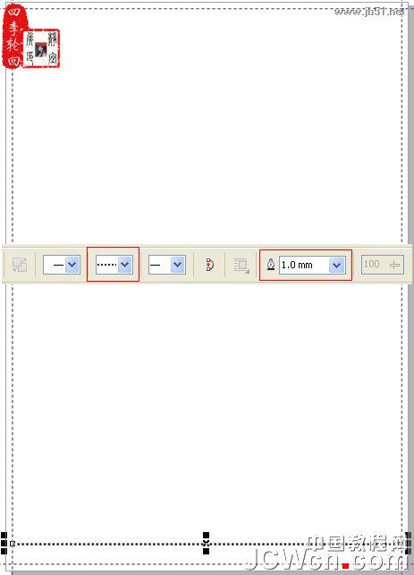 4、使用“钢笔工具”,按住“Shift”键不松手,拖动鼠标绘制一条水平直线,参数设置(也可以对其不进行设置,直接绘制一条水平直线,宽度:1.0mm)及效果如图04所示: