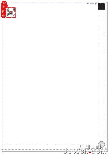 按“确定”按钮,设置页面后,按下“Ctrl+A”快捷键全选,选择全部封面内容,然后移到页面右边,放置合适位置,按 “Ctrl+G”快捷键进行群组,并移动参考线的位置,效果如图14B所示: