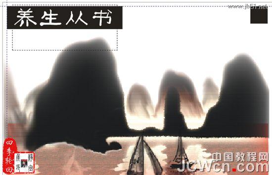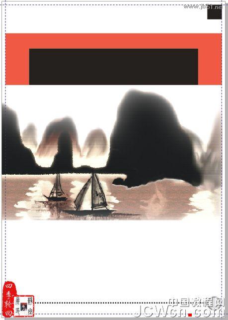 选择它,并按“Ctrl+U”取消群组快捷键,将左边的内容删除,只保留红色矩形和水墨画素材,效果如图如图14D所示: