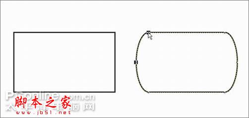 31、帽子装饰。用矩形工具画一个小矩形,再用形状工具拖动角上节点调节为如下圆角。