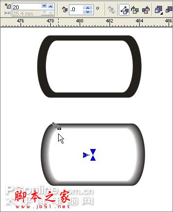 29、用交互填充工具拉出一个从黑到白的线性渐变,设置如下。轮廓为黑,宽度为0.7mm。