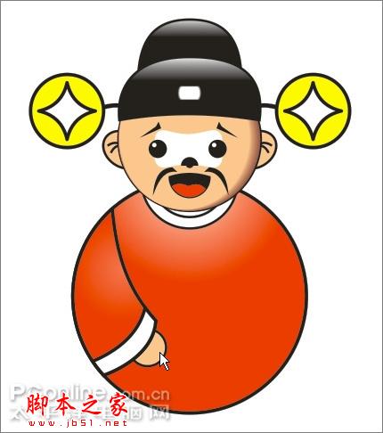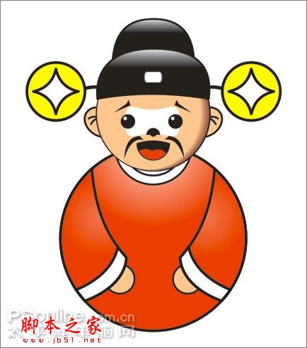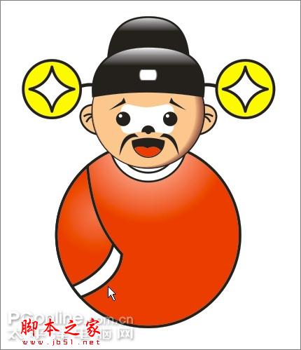 Coreldraw(CDR)利用造型工具和交互式工具设计制作搞笑的芝麻官形象的不倒翁实例教程