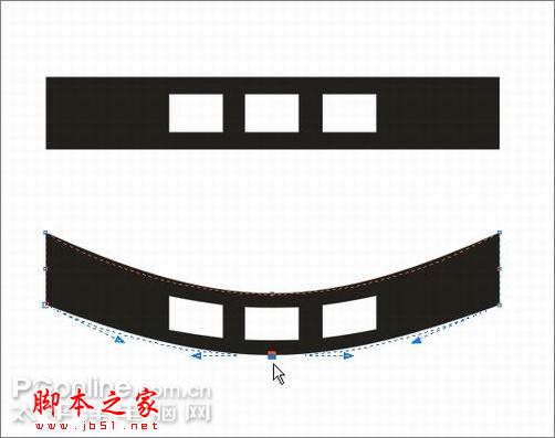 48、腰带。先画一个长矩形填充黑色,再画一个小矩形填充白色,复制出另外两个小矩形,如下摆放后Ctrl+G群组。选择交互式封套工具,将腰带调节成如下形状。