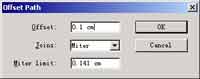 在Offset中根据文字的大小输入恰当的数值。本例子中我用的是72磅的字Offset输入的是0.1cm。Joins选择Miter,Miter Limit输入0.141cm。一切设置好以后按下OK,文字外就多了一圈外线。如图