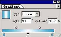 现在我们选中外线,然后在Gradient浮动面板中编辑出两端白色中间蓝色的渐变。在Type中选择linear(线状渐变),Engle(角度)为90度。