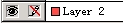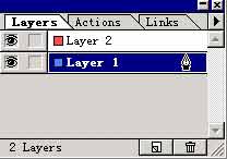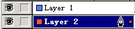 然后选中外线图形我们发现在layer1的右边的钢笔图形的旁边多了一个小方块(眼睛不好的要仔细看哟)我们用鼠标将这个小方块拖动到layer2上,这时外线图形变成了层的颜色红色(也就是layer2左边的方块的颜色)。由于layer2在layer1的上面这时外线的图形就会遮住文字,我们就将layer2用鼠标拖动到layer1下面。