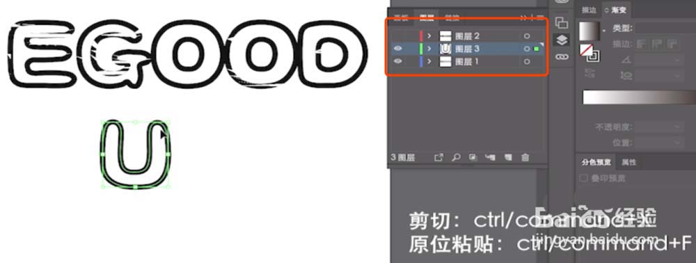 9、选中U字体,新建图层,Ctrl+C,Ctrl+F,将其他图层隐藏。