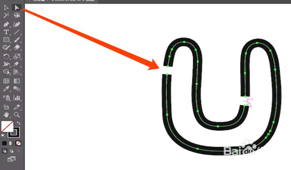 11、使用直接选择工具删除刚刚添加锚点的地方的路径。