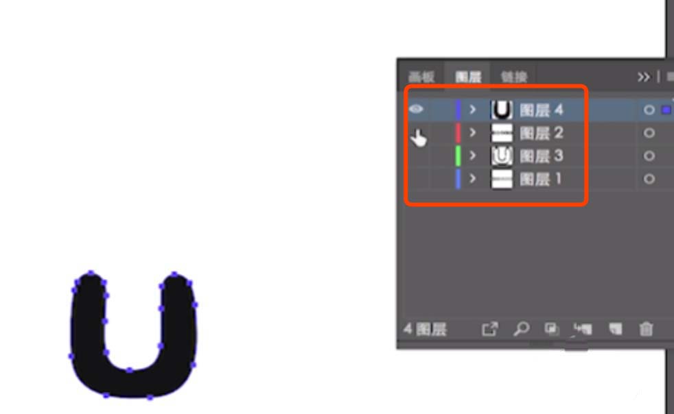 21、使用路径选择工具A,选中U字体。
