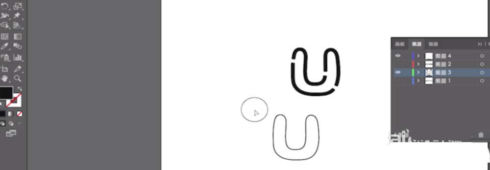 16、选中第二个U图层,对象--扩展。将第一个U字体和第二个U字体重合。