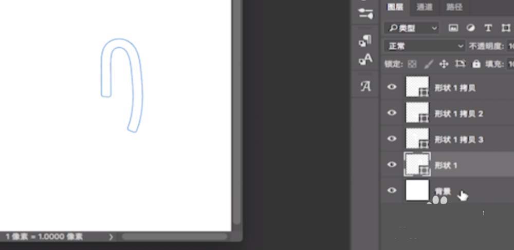 23、再次选择形状图层,选中一条路径,Ctrl+shift+J,直到每一条单独的路径为一个图层为止。
