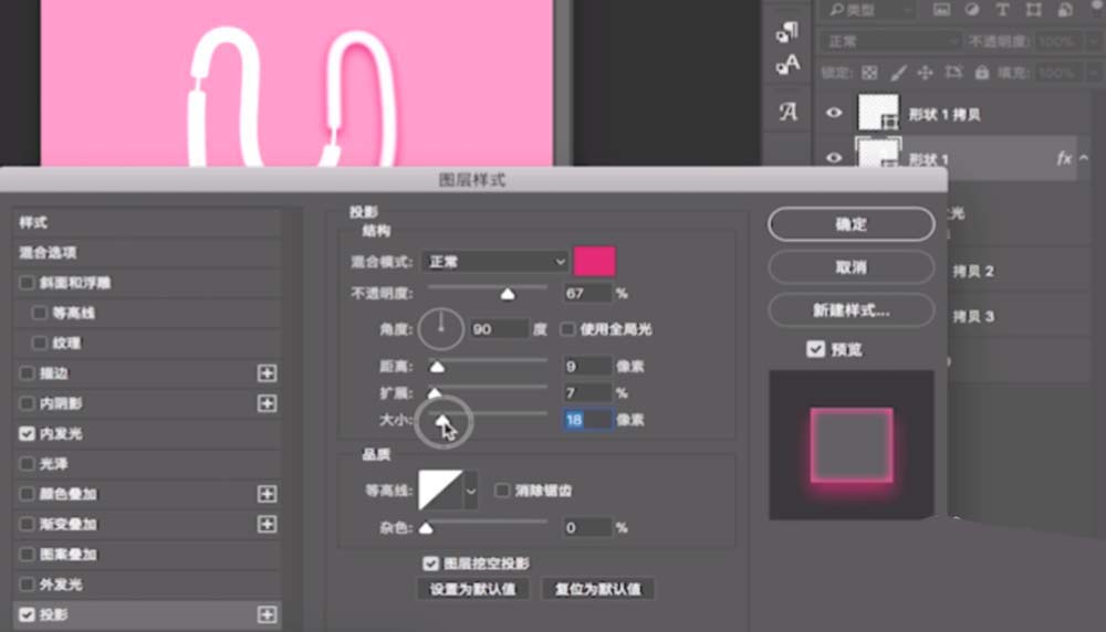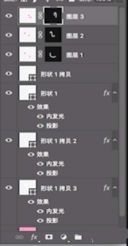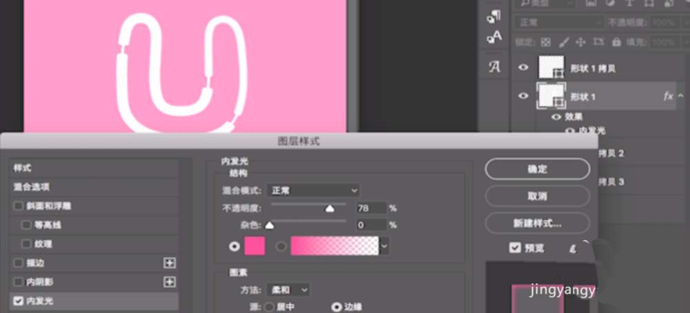 26、双击一个形状图层,添加内发光图层样式。