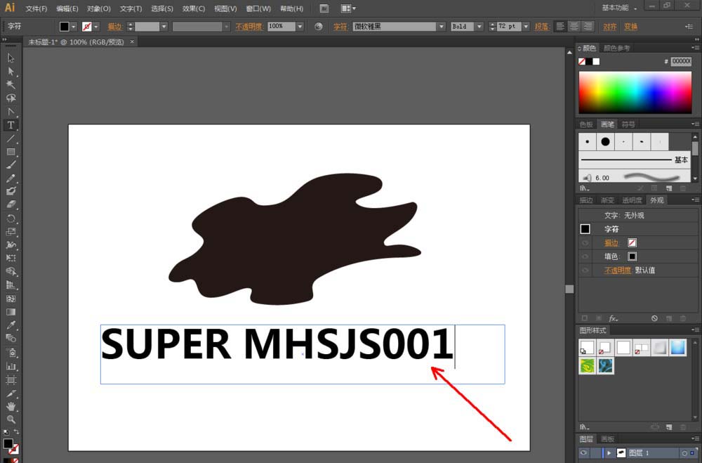 2、点击【文字工具】,按图示设置好文字各个参数后,输入文字内容:SUPER MHSJS001;