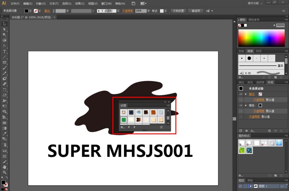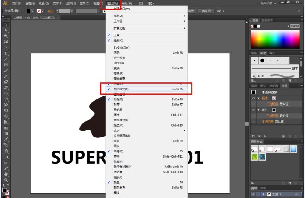 3、点击【窗口】-【图形样式】。点击【图形样式库菜单】-【纹理】,将纹理样式工具栏调出