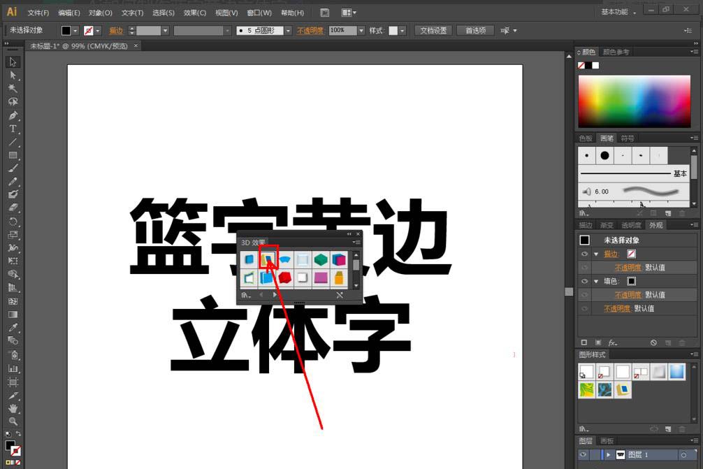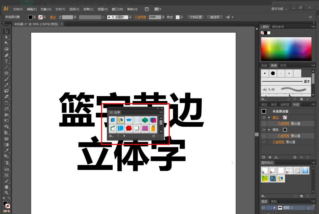 3、点击【图形样式库菜单】-【3D效果】,将3D效果图形样式工具栏调出;