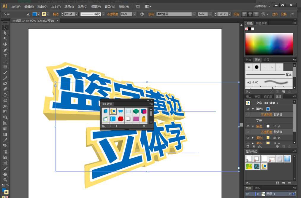 以上就是Ai设计三维立体的蓝字黄边字体的教程,希望大家喜欢,请继续关注脚本之家。