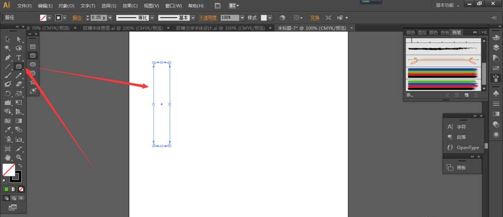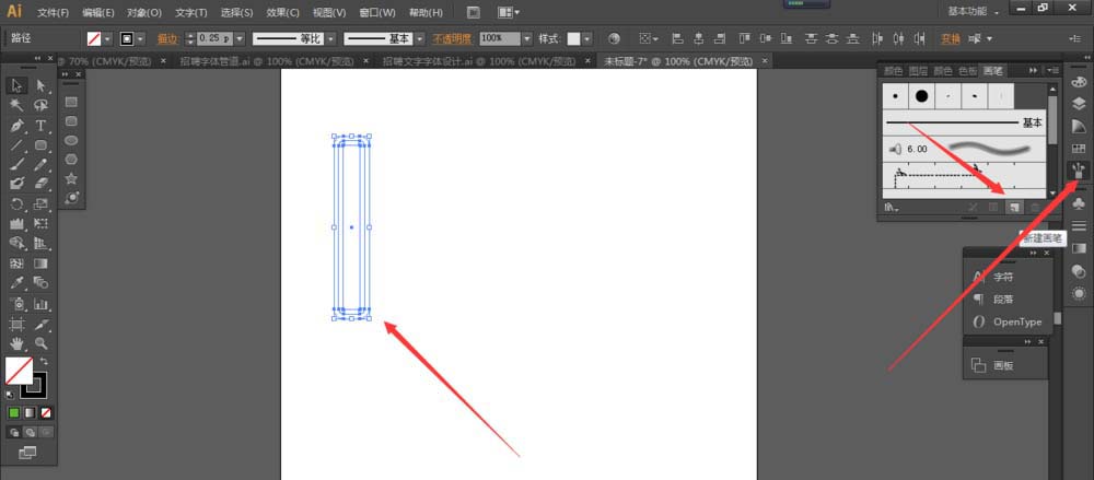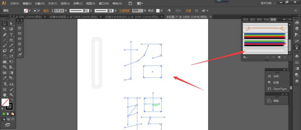 7、我们使用钢笔工具,描出汉字的轮廓中心线,并全部选中。