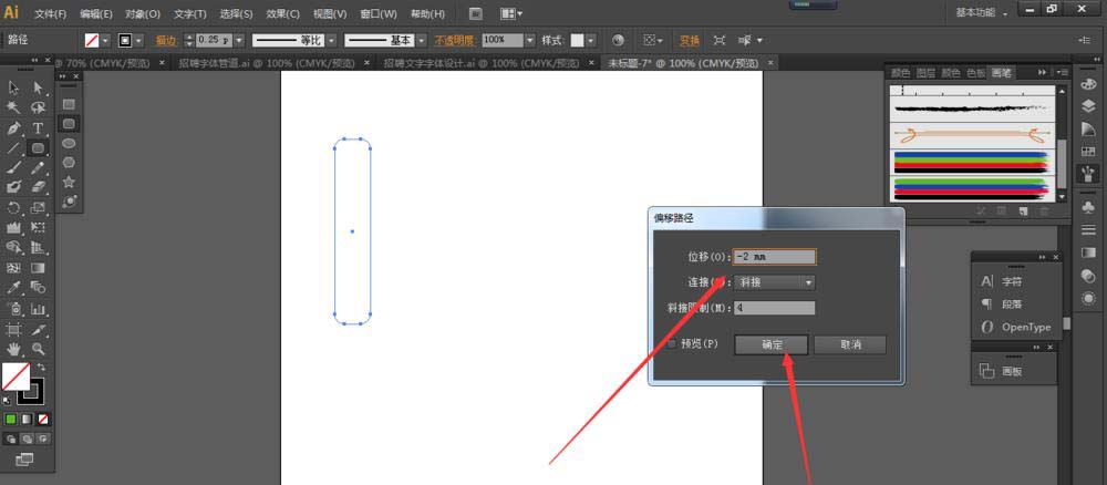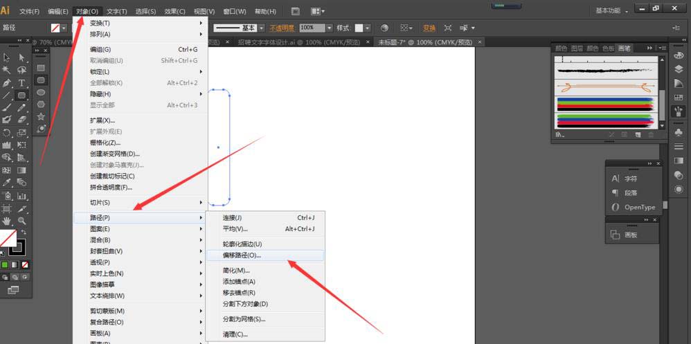 3、然后点击对象——路径——偏移,我们这里使用内偏移,所以要填负数。