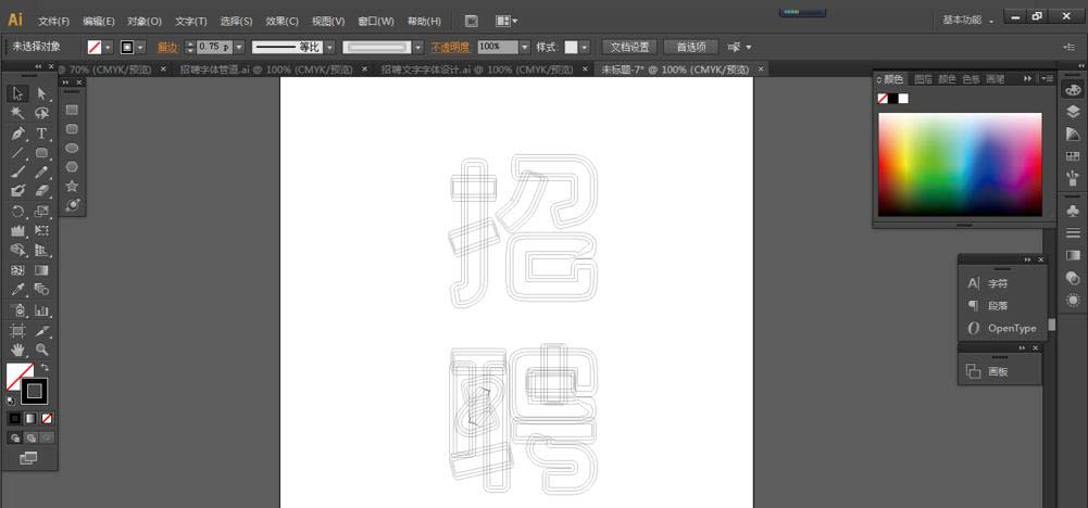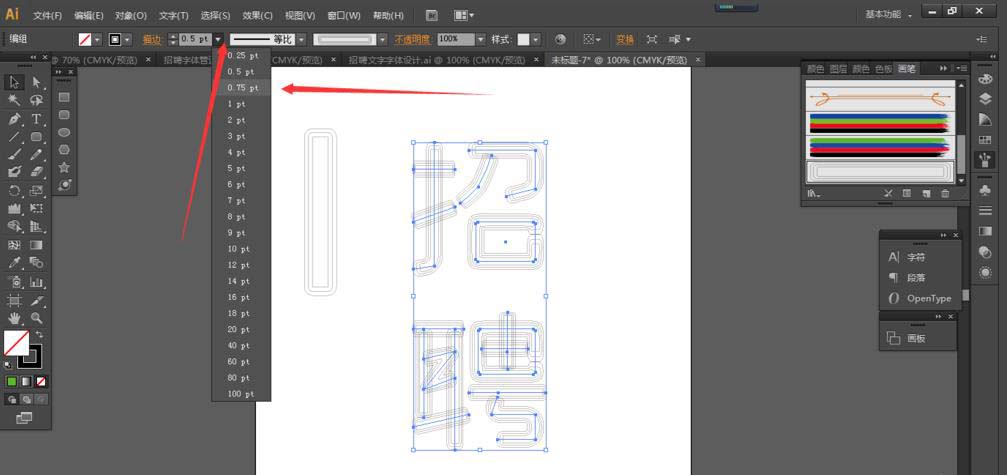 9、调一下线条宽度。这样的一个多轮廓字体就做好了。