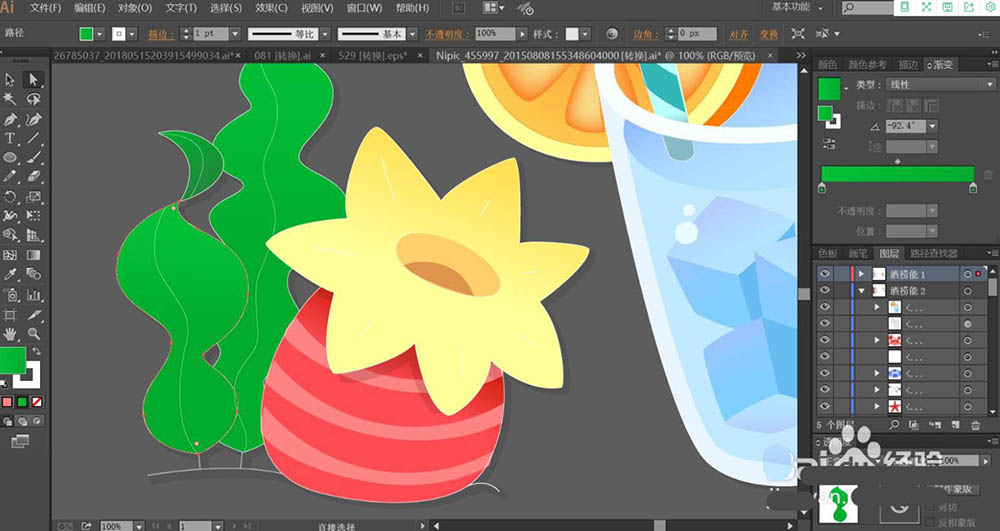 ai怎么手绘夏日水果柠檬茶矢量插画?