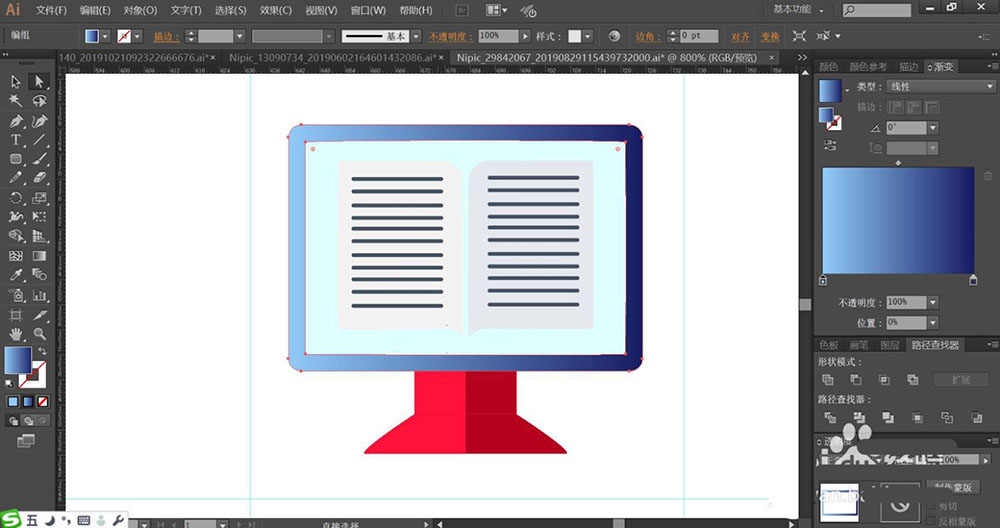 3、使用灰白色填充显示器上面的书本,再用灰黑色填充书本上面的文字路径。