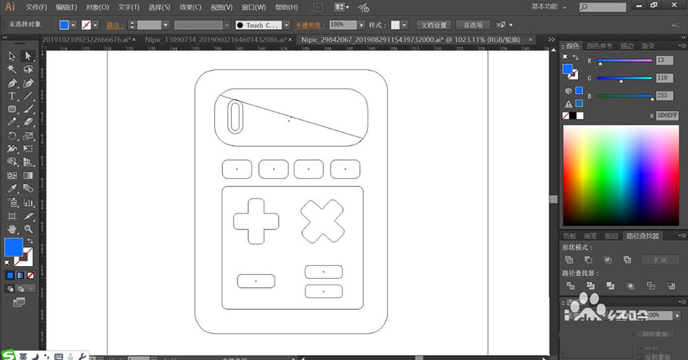 6、使用矩形工具画出计算器的屏幕与主体路径,再用钢笔画出计算器上面的按键的路径。