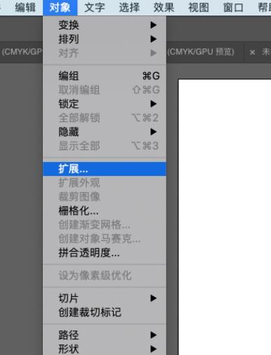 3、找到对象下的“扩展”,执行后添加渐变效果。