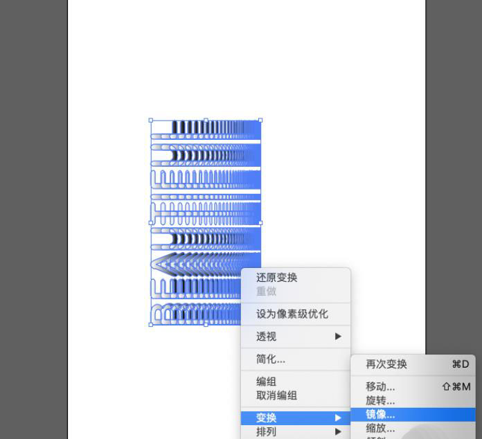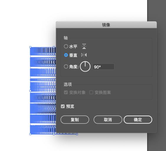 6、全选右键后,找到“变换”项下的“镜像”,勾选“垂直“,点击”复制“。