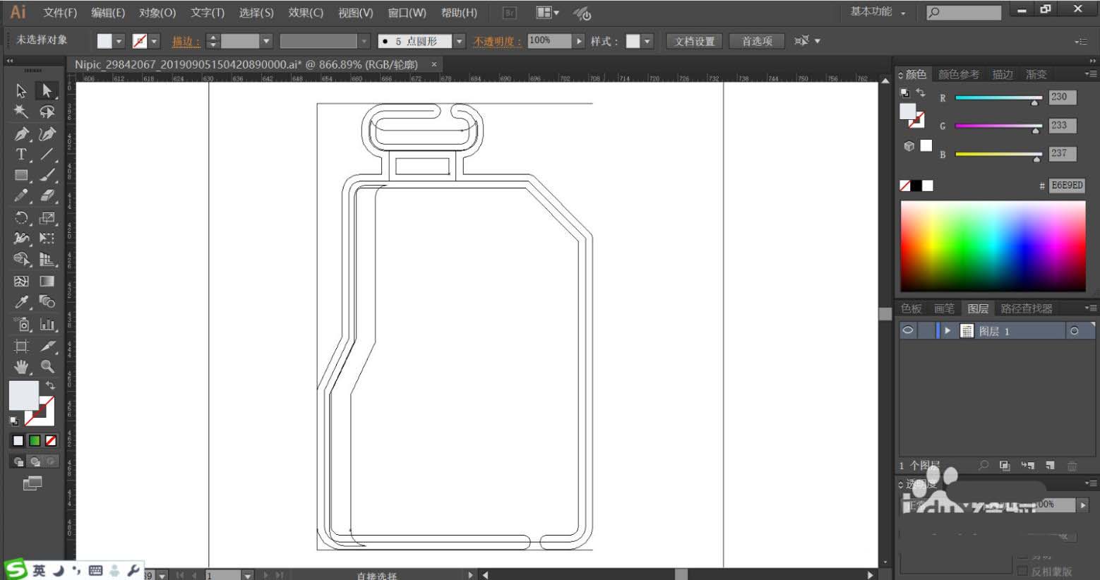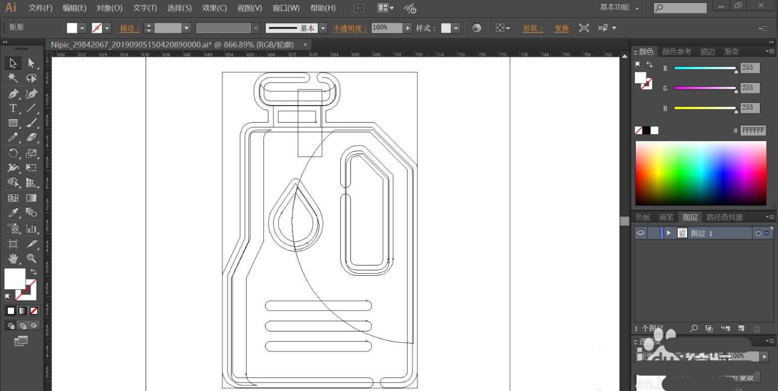 1、使用钢笔工具画出油桶的基本轮廓边缘,再用锚点工具把油桶形状当中的圆滑位置进行调整让其符合油桶的特点。重点绘制油桶的开口结构件,使用矩形工具绘制出细节路径。