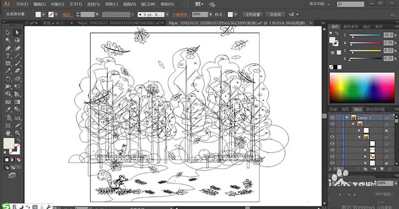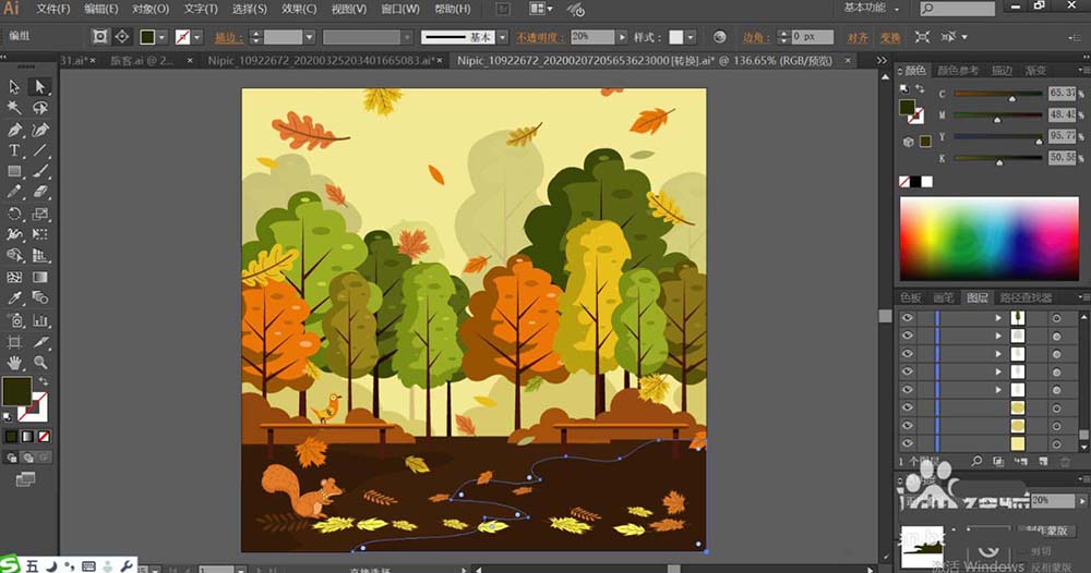 ai怎么设计公园秋天场景水墨插画? ai公园秋景的画法