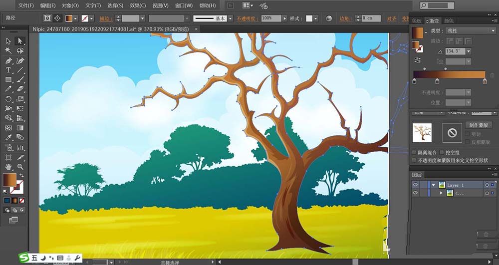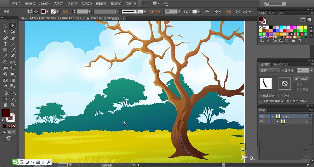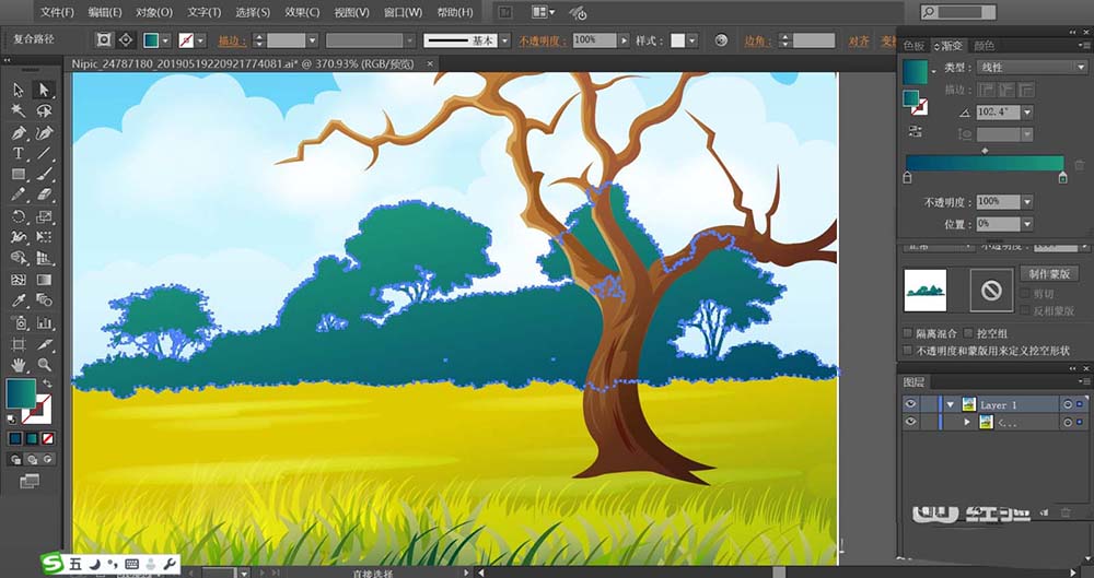 ai怎么绘制水彩画效果的大自然风景? ai草地风景插画的画法
