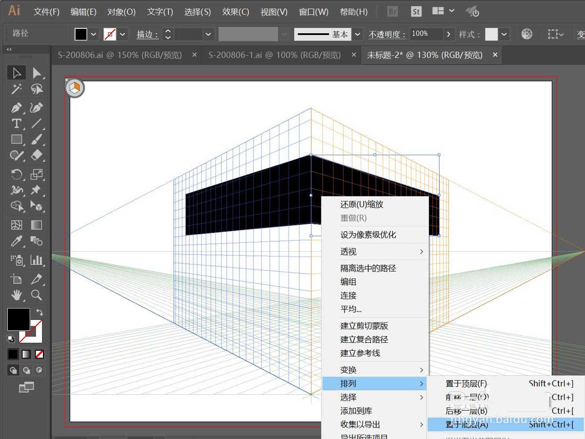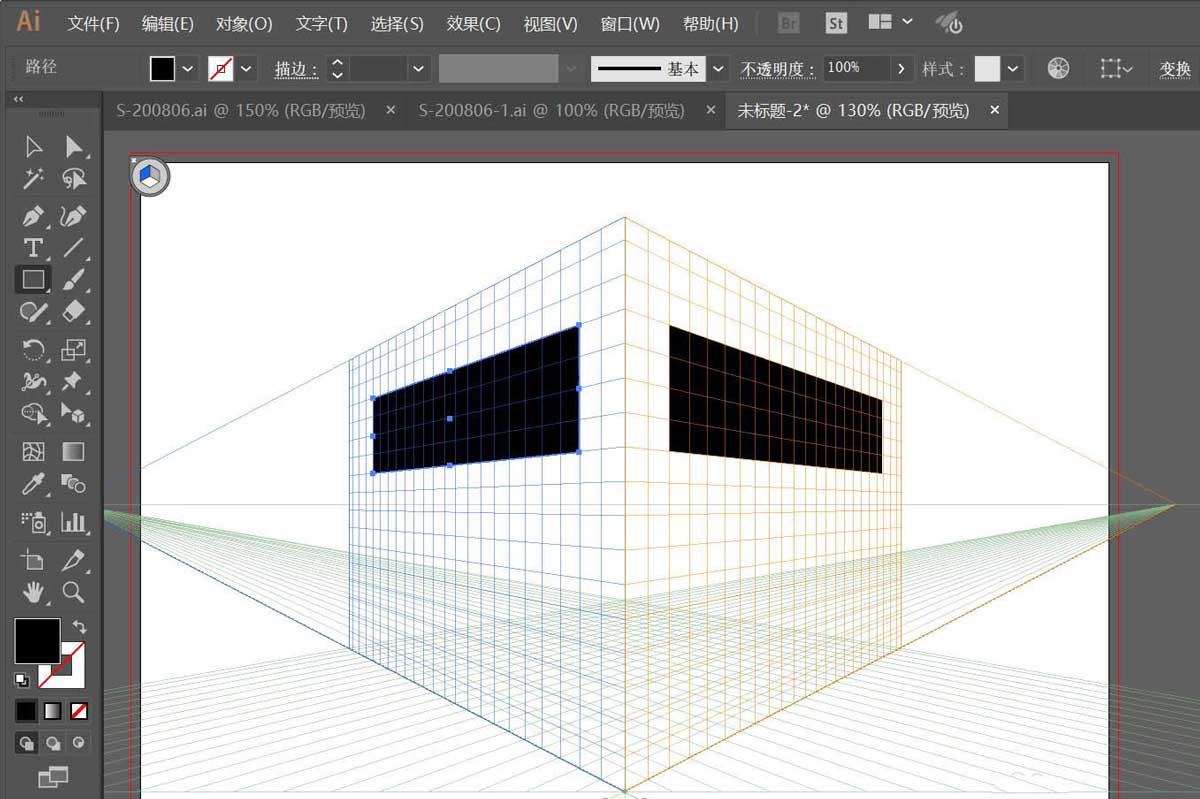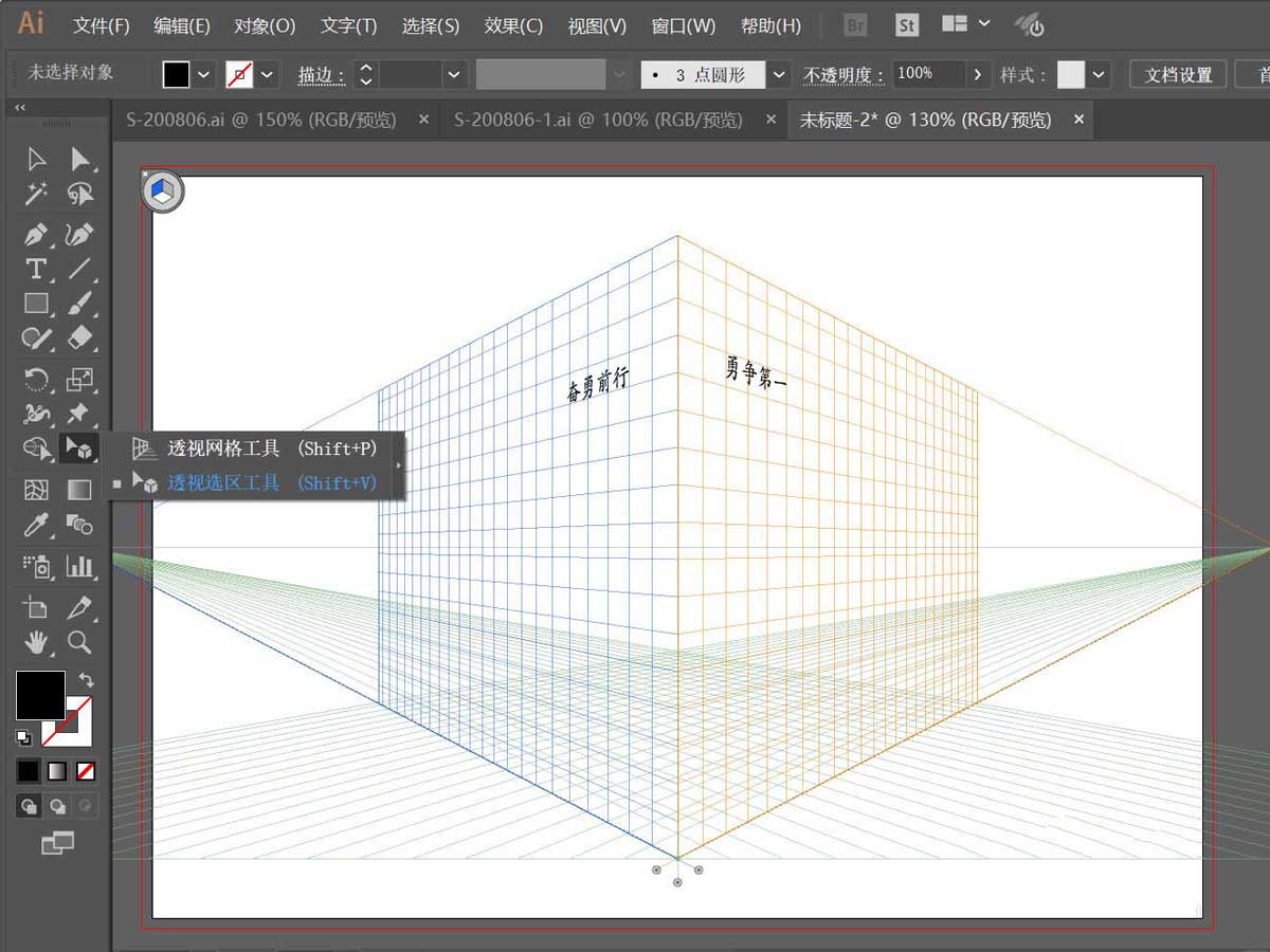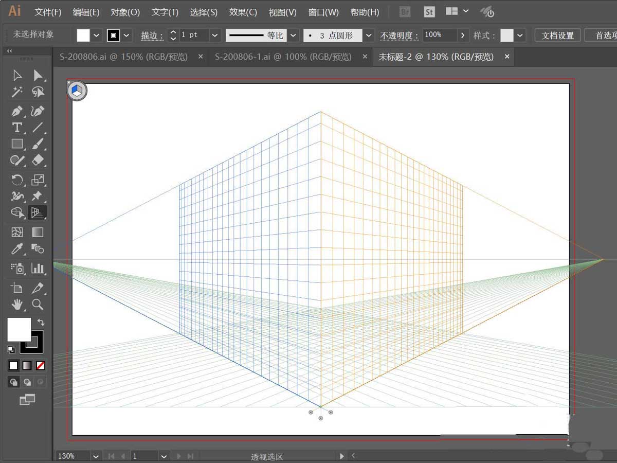 1、打开软件,双击运行AI软件,新建一个画板,并打开透视网格工具;