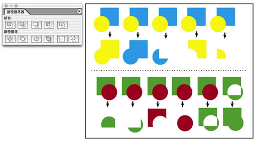 InPathfinder 结合所选的对象,重新创建复合形状对象, 并且让您可以根据原始重叠对象形状修改新对象。
