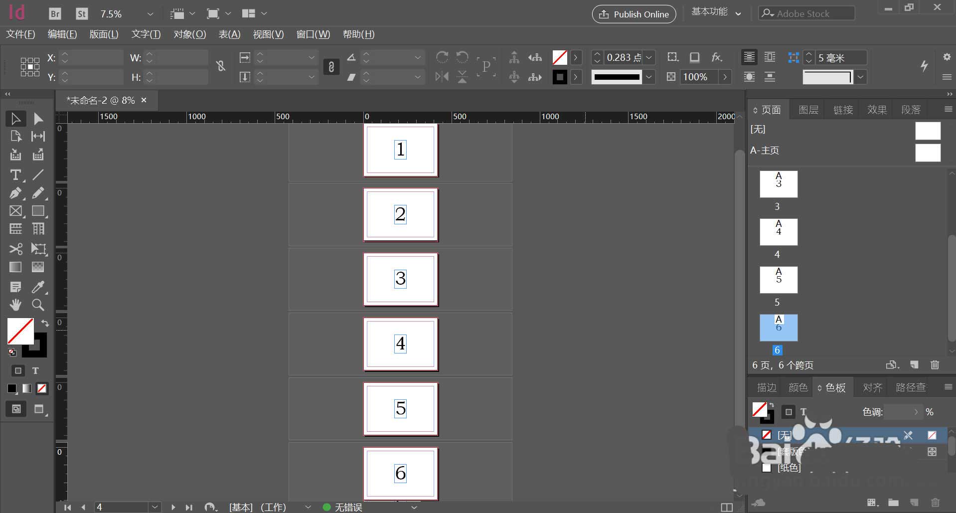 4、本次共新建了6个页面,并且为每个页面进行编号。