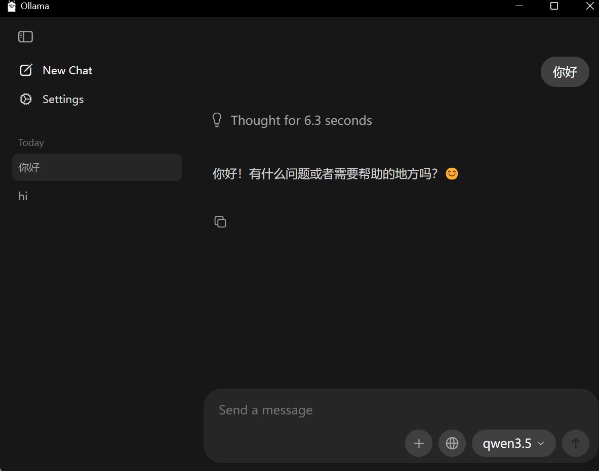 如果成功进入交互界面,说明本地大模型已经跑起来了。