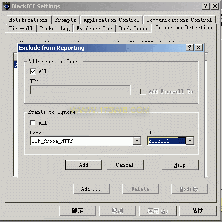 最后在“Intrusion Detection”做额外通行设置,个别系统例如DVBBS有时候会触发BlackICE误鸣,错误拦截用户IP,遇到这这种情况的话,请查阅log档检查是什么激活拦截并在“Intrusion Detection”允许通行。下图是DVBBS其中一个会触发BlackICE误鸣的其中一个动作。