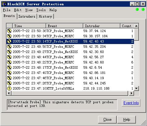 BlackICE是一个简单的防火墙软件,虽然你不可以指望他能抵御DDOS之类的攻击,不过抵挡一下那些不学无术的家伙还是合格的。重要的是他有Server版,可以成为服务运行。